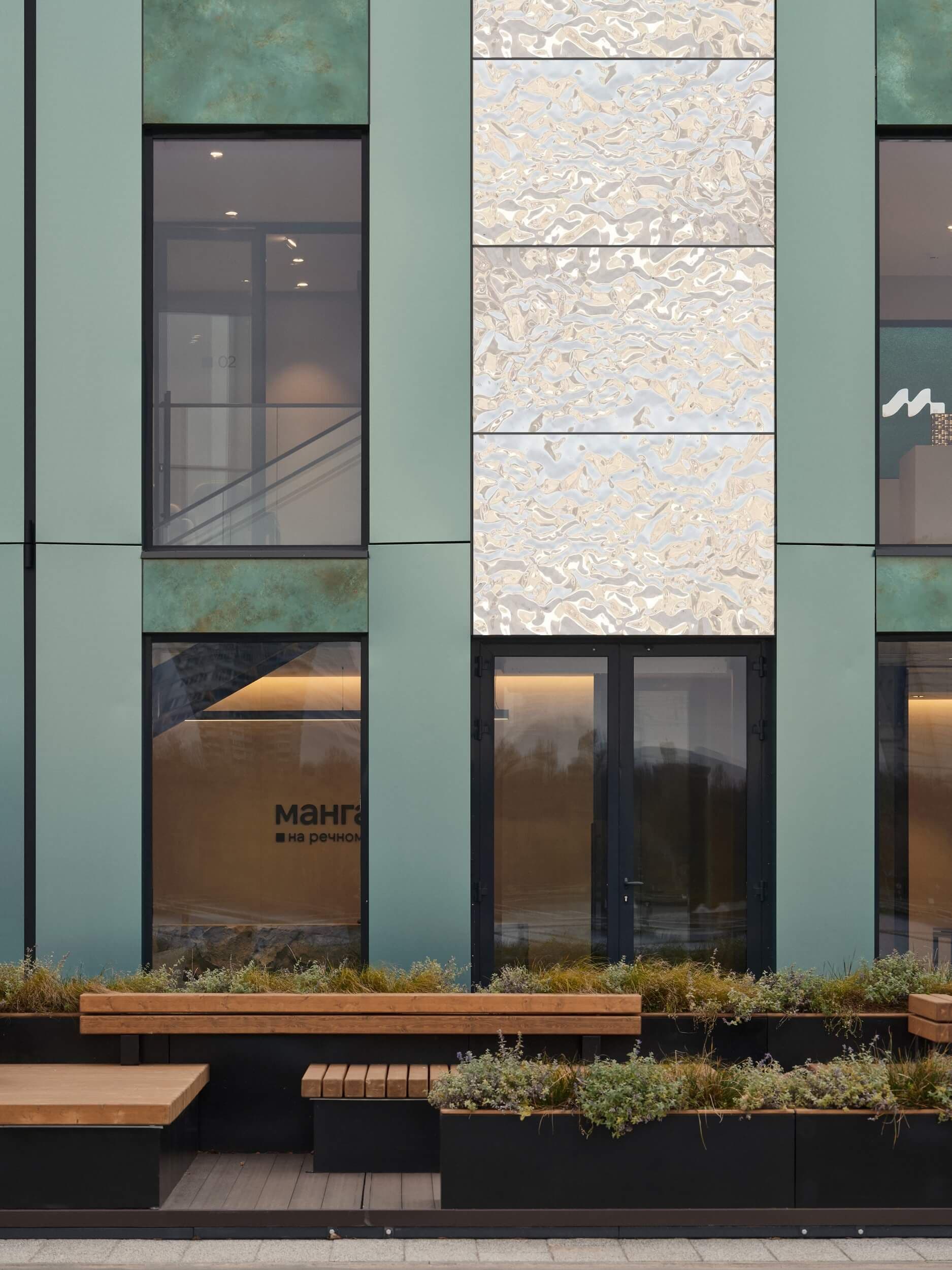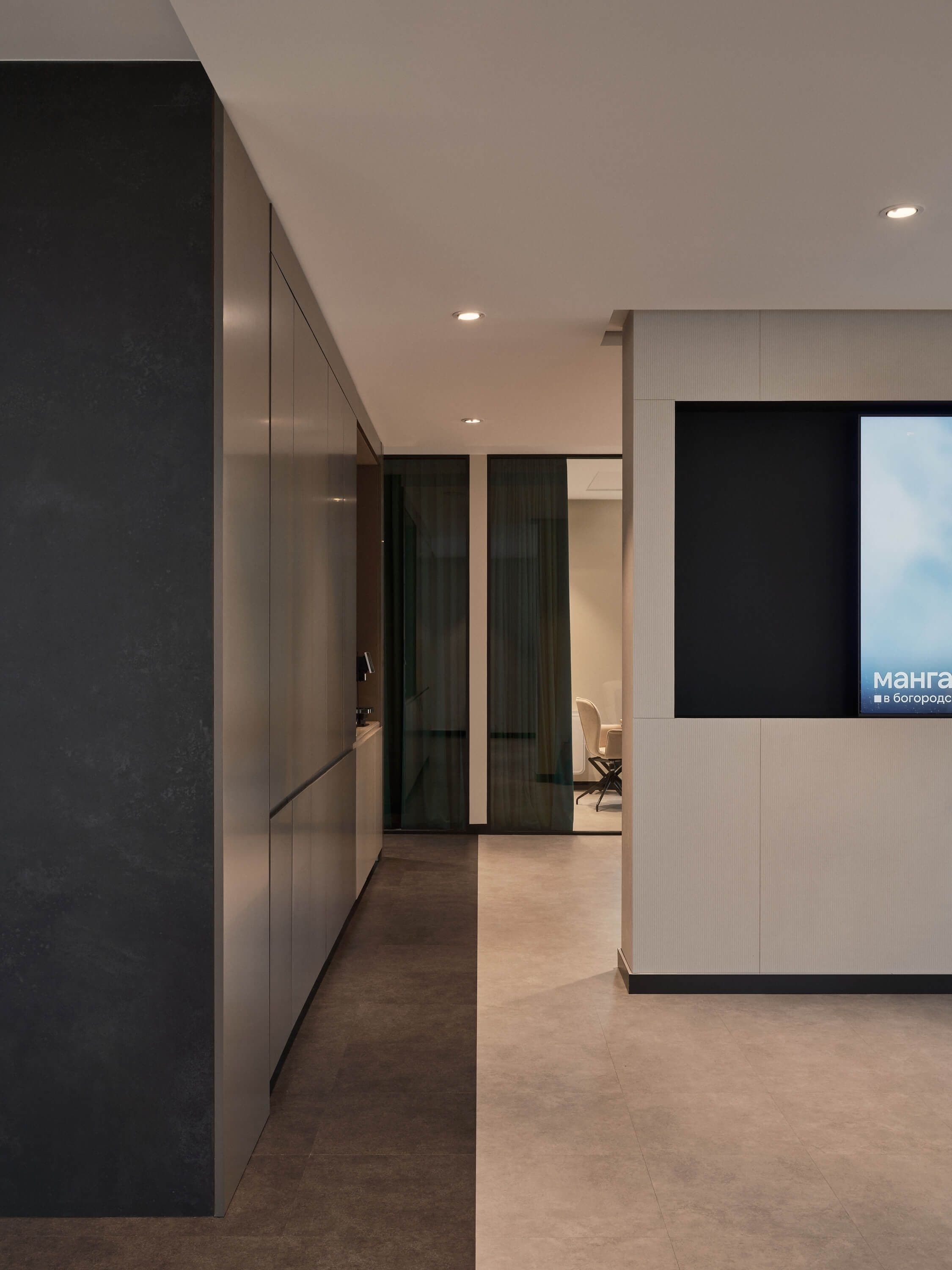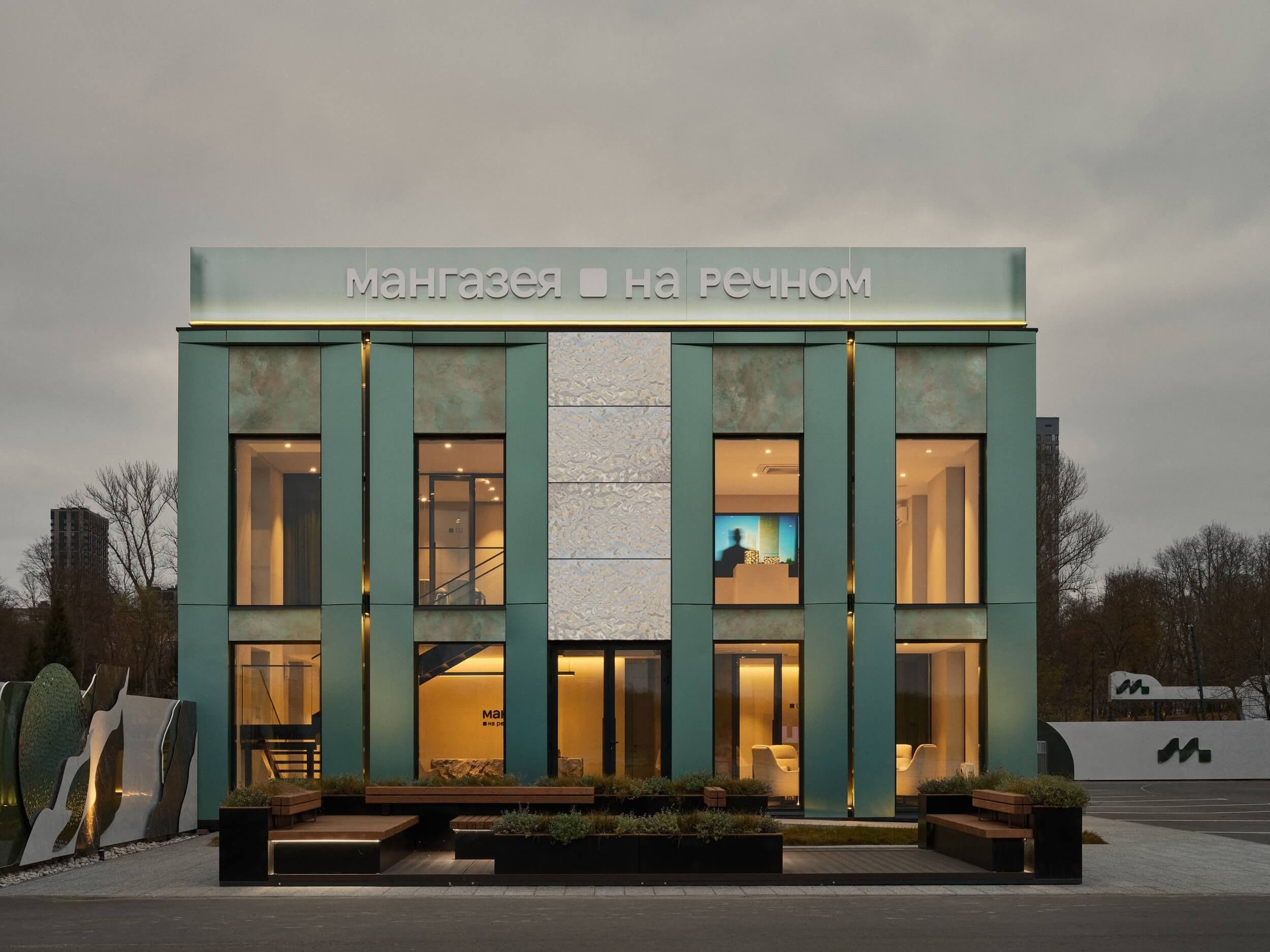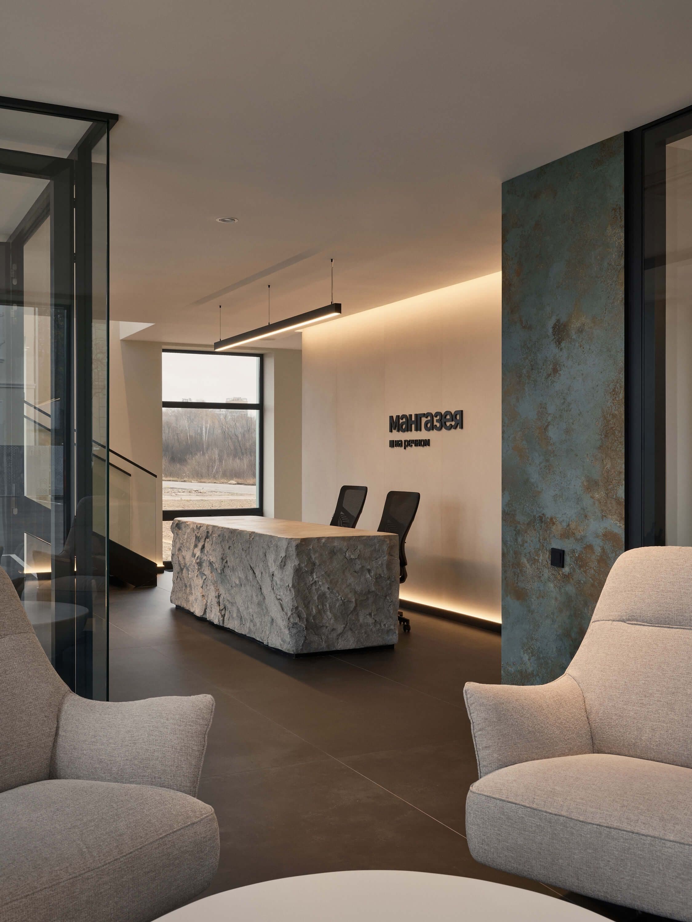 Северные воды — холодные воды. Но и они могут нести ощущения тепла, спокойствия, внутренней наполненности. В концепции мы стремились передать оттенки природы северных краев. Момент, когда природа просыпается, солнце покрывает землю и активирует медитативное состояние человека. Офис продаж жилого комплекса «Мангазея на речном» — это кусочек северного мягкого утра внутри мегаполиса. Территория спокойствия и умиротворенности.